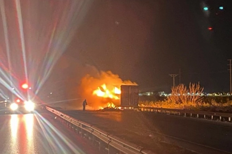 Tırın yanması sebebiyle yol kapandı.