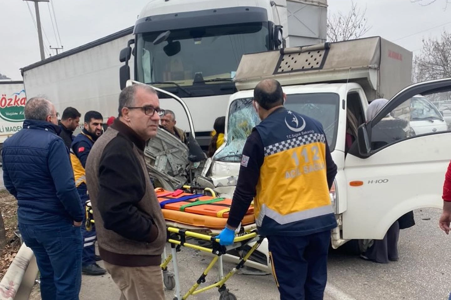Bursa'da TIR ile kamyonetin çarpışması sonucu 1 kişi sıkışarak yaralandı.