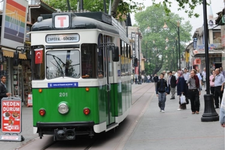 Merkez Osmangazi ilçesi Atatürk Caddesi üzerinde ilerleyen tramvayın arkasına kaçak yollarla binerek seyahat yapan çocuk resmen ölüme meydan okudu.