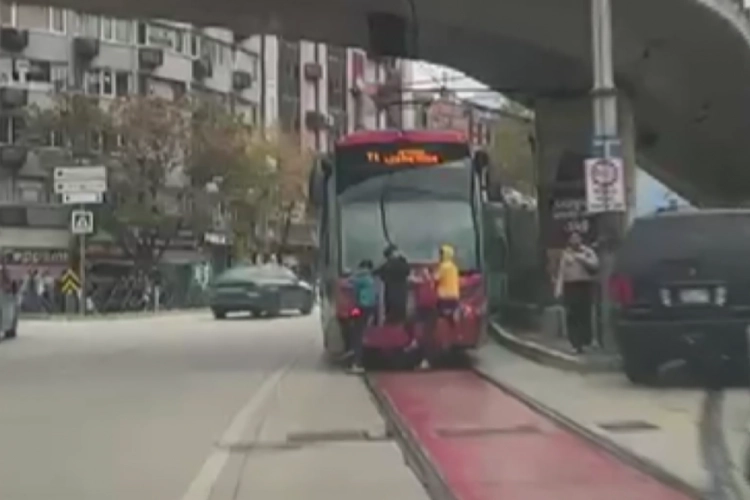 Olay, merkez Osmangazi ilçesinde meydana geldi. Dört çocuk, hareket halindeki bir tramvayın arkasına tutunarak dakikalarca yolculuk yaptı.