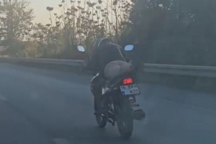 Görüntüler Mustafakemalpaşa ilçesi Bursa yolunda kaydedildi. Mustafakemalpaşa'dan Bursa istikametine seyir halinde olan sürücü, motosikletin üzerine yüzüstü yattı.