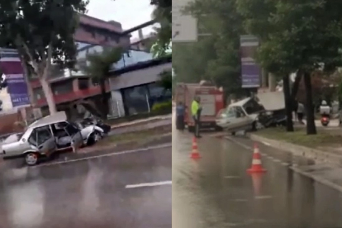 Kaza, merkez Osmangazi ilçesi Sanayi Caddesi üzerinde meydana geldi. Edinilen bilgiye göre, yağmur nedeniyle kayganlaşan yolda sürücüsünün kontrolünden çıkan otomobil, savrularak yol kenarında bulunan ağaca çarptı.