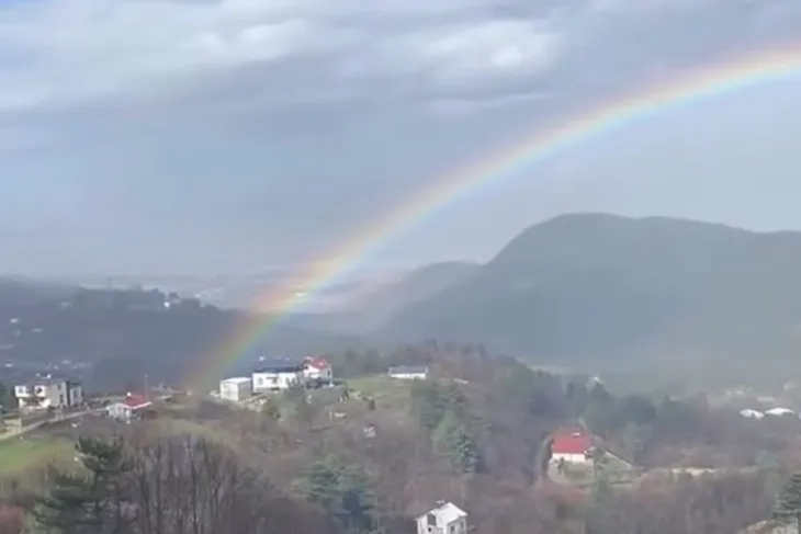 Bursa'nın Kestel ilçesine bağlı Saitabat Mahallesi'nde yağmurun ardından oluşan gökkuşağı, görenleri hayran bıraktı. Bursa genelinde etkili olan yağışlı havanın ardından Saitabat'ta bulutların arasından yüzünü gösteren güneşle birlikte gökyüzünde beliren gökkuşağı, doğayla iç içe manzarasıyla kartpostallık görüntüler oluşturdu. Yağmur sonrası temizlenen hava ve yeşilin her tonunu barındıran Saitabat vadisi üzerinde oluşan gökkuşağı, vatandaşlara keyifli anlar yaşattı. O anlara tanıklık eden vatandaşlar, gökkuşağını cep telefonlarıyla görüntülerken, kısa süre etkili olan doğa olayı çevrede görsel bir şölen sundu. Gökyüzünde beliren gökkuşağı, bir süre sonra yavaş yavaş kayboldu. Yağmurun ardından ortaya çıkan bu manzara, Bursa'nın Kestel ilçesindeki Saitabat'ta baharın güzelliğini bir kez daha gözler önüne serdi.
