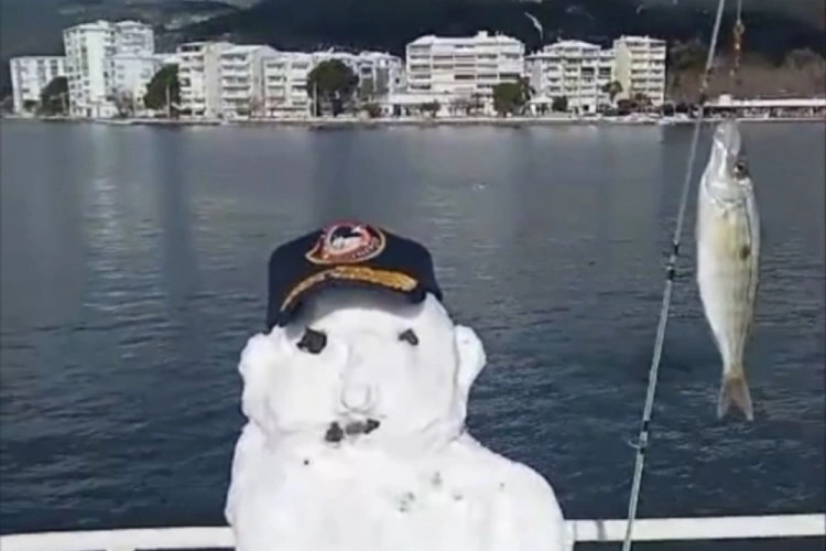 Gemlik ilçesinde denize açılan balıkçı grubu, balık tutmayı bırakarak teknede biriken karlar ile kardan adam yaptı. Yaptıkları kardan adama "Mülayim" adını veren balıkçılar; eline de olta ve balık koyup o anları ölümsüzleştirdi.