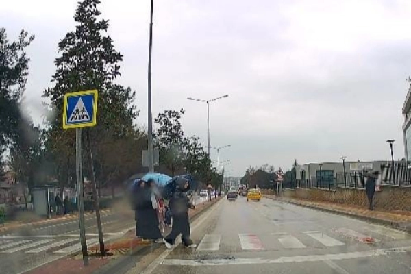 Görüntülerde öğrencilerin yola adım attığı sırada otomobilin durmayarak geçişini sürdürdüğü ve öğrencilerin korkuyla geri çekildiği görüldü.