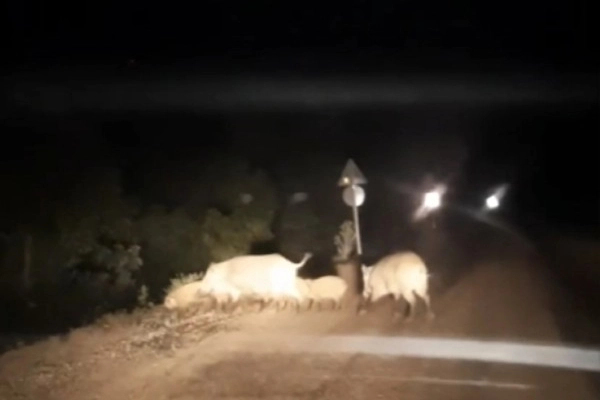 Orhaneli ilçesine bağlı Çınarcık köyünde yemek bulamayan domuz sürüsü köye inerek yemek aradı.