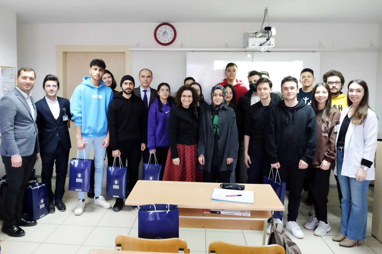 Bursa'da Osmangazi Halk Eğitim Merkezi (HEM) Müdürü Mehmet Köse ve Müdür Yardımcısı Ali Albayrak, YKS hazırlık eğitimlerinin devam ettiği BUSMEK Hürriyet Sınava Hazırlık Merkezini ziyaret etti. Büyükşehir Belediyesi Hayat Boyu Öğrenme Şube Müdürü Ayşe Hacıoğlu ve BUSMEK Koordinatörü Aslan Şahin’in de eşlik ettiği ziyarette, öğrencilere ücretsiz ek YKS hazırlık kitapları hediye edildi. Öğrencilerle sohbet eden Köse, öğrencilere üniversite hayatı ile ilgili tecrübelerini aktardı.