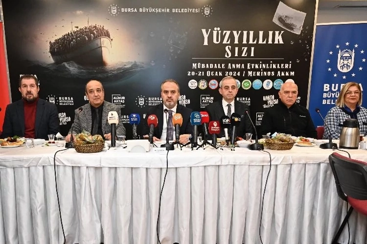 Bursa Büyükşehir Belediye Başkanı Alinur Aktaş, konuşmasına mübadeleyi konu alan İhsan Tevfik’in ‘Selânik Gazeli’nden mısralar okuyarak başladı. Mübadelenin, unutulması mümkün olmayan, acılarla dolu hikâyelerin yaşandığı bir yolculuğun adı olduğunu dile getiren Başkan Aktaş, “Mübadele, göç etmeye mecbur bırakılan insanların, etkisinden çıkamadığı büyük bir travmanın karşılığıdır. 100 yıl önce açılan bu yara hâlâ kapanmadı. Mübadil Türkler, kırık dökük hayatlarının, yitirilen anılarının ve paramparça olmuş aile bağlarının acısını ilk günkü gibi yüreklerinde taşıyor. 1923 Lozan Konferansı’nda Türk ve Yunan devletleri arasında imzalanan 'nüfus mübadelesi sözleşmesi' sonrası gerçekleşen, Türk ve Rumların zorunlu değişimini içeren bu süreç, binlerce insanın yaşamını darmadağın eden bir trajedi olarak tarihe geçti. İki devlet arasında yapılan bu acı dolu anlaşma, adeta geçmişin kök salmış bağlarını kopartarak, yıllarca bir arada yaşamış olan Türk ve Rum halklarını yürek burkan bir ayrılığa ve bilinmeyen bir geleceğe sürükledi” dedi.
