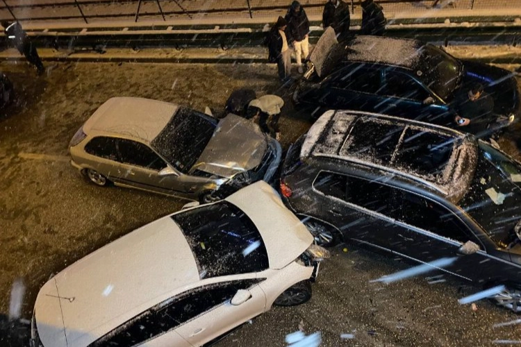Bursa'da kar yağışı nedeniyle kayganlaşan yolda kontrolden çıkan 11 araç kayarak birbirine girdi. Zincirleme kazada 2 kişi yaralandı.