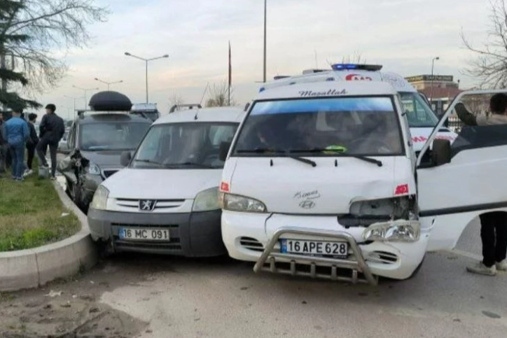 Emirhan K. idaresindeki 16 PC 369 plakalı otomobil, Alanyurt Köprülü Kavşağı'nda Abdulhalim H. idaresindeki 16 MC 091, Salih T. idaresindeki 16 APE 628 plakalı araç ve Mümin Ş. idaresindeki 16 H 8471 plakalı araç çarpıştı.