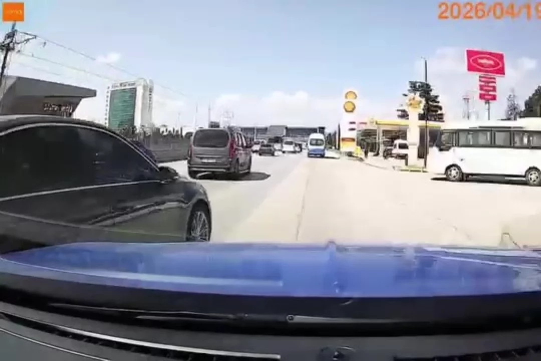 Bursa'da bir sürücünün tehlikeli şekilde makas atması kazaya ramak bıraktı. O anlar başka bir aracın kamerasına saniye saniye yansıdı.