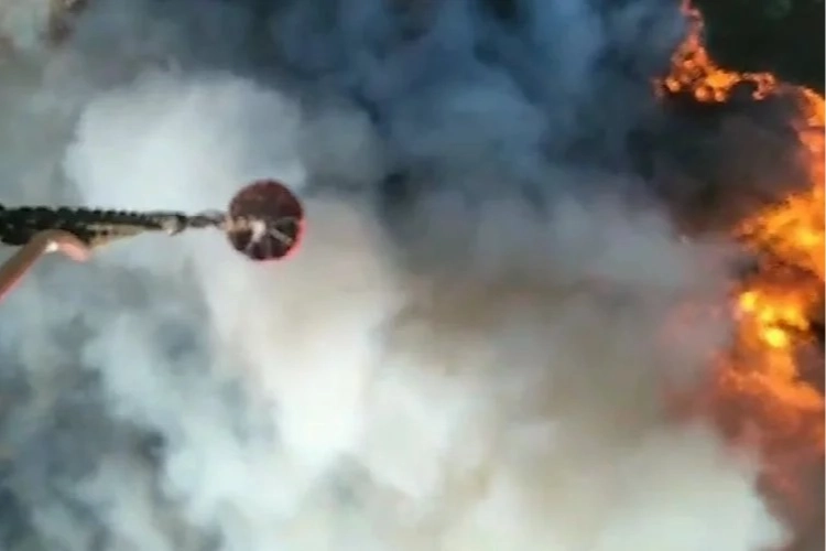 Ormana ait yangın söndürme helikopterlerinin havadan müdahalesi yangının söndürülmesinde önemli rol oynadı. O anlar da helikopter kamerasına yansıdı.