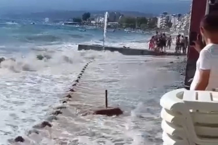 Kumla'da şiddetli rüzgar nedeniyle dalgalar kıyı şeridine vurdu. Peş peşe vuran dalgaların sahil boyuna taşmasıyla yürüyüş yolu sular altında kaldı. Vatandaşlara korku dolu anlar yaşatan dalgalar cep telefonu kamerasıyla kaydedilirken, teknelerin alabora olmasına ramak kaldı.
