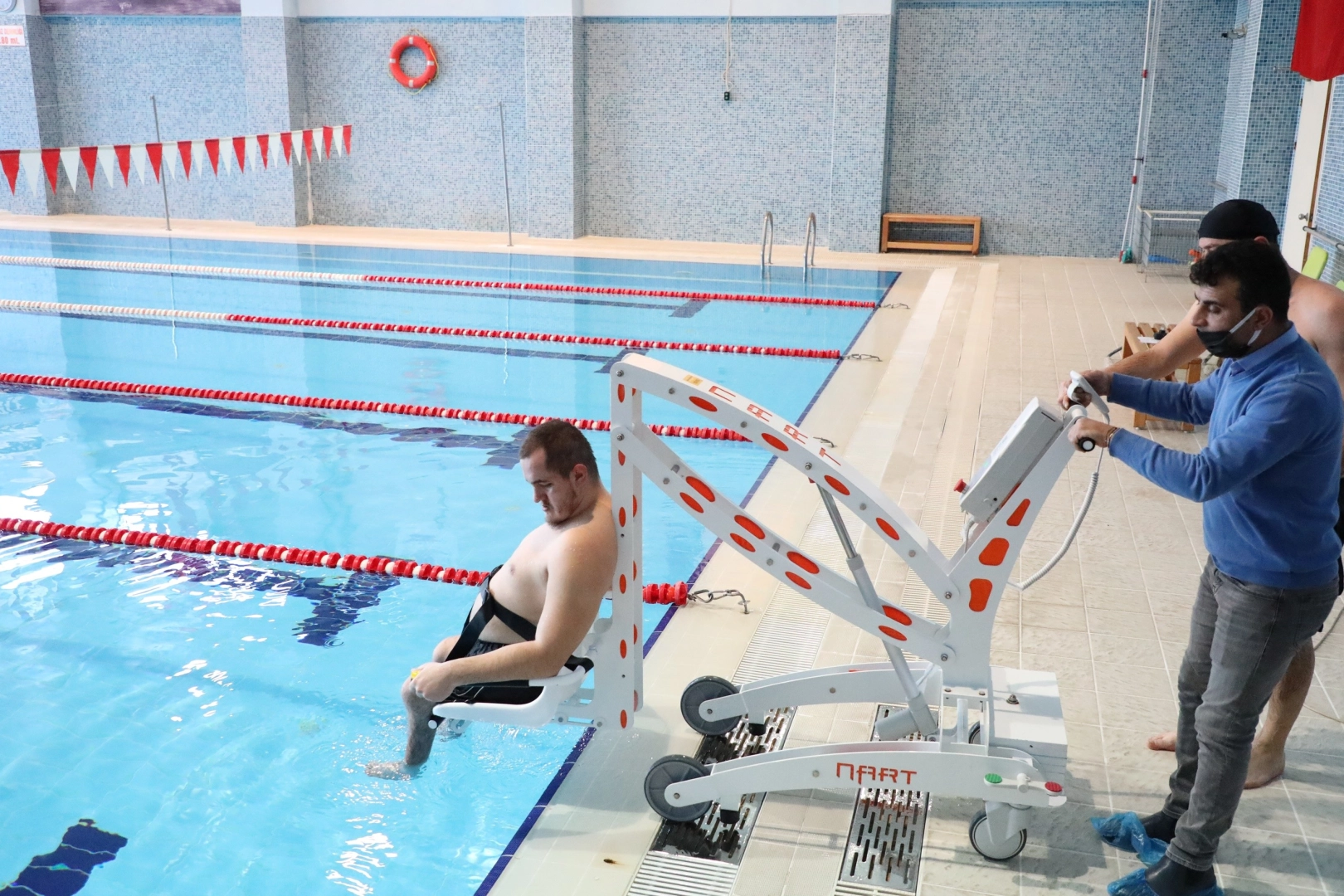Sosyal Yaşam Merkezi’nde bulunan yarı olimpik havuza engelli vatandaşların kullanması için asansör kurdu. Bu asansörle artık fiziksel engelli vatandaşlar havuza profesyonel gözlemciler eşliğinde girip yüzebilecek.