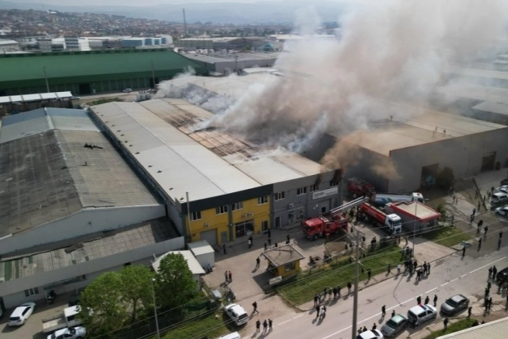 Bursa Büyükşehir Belediyesine bağlı ekipler, mobilya ürünlerinin imal edildiği fabrikada etkili olan ve dumanı ilçenin birçok noktasından görülen yangını söndürmek için çalışmasını sürdürüyor.