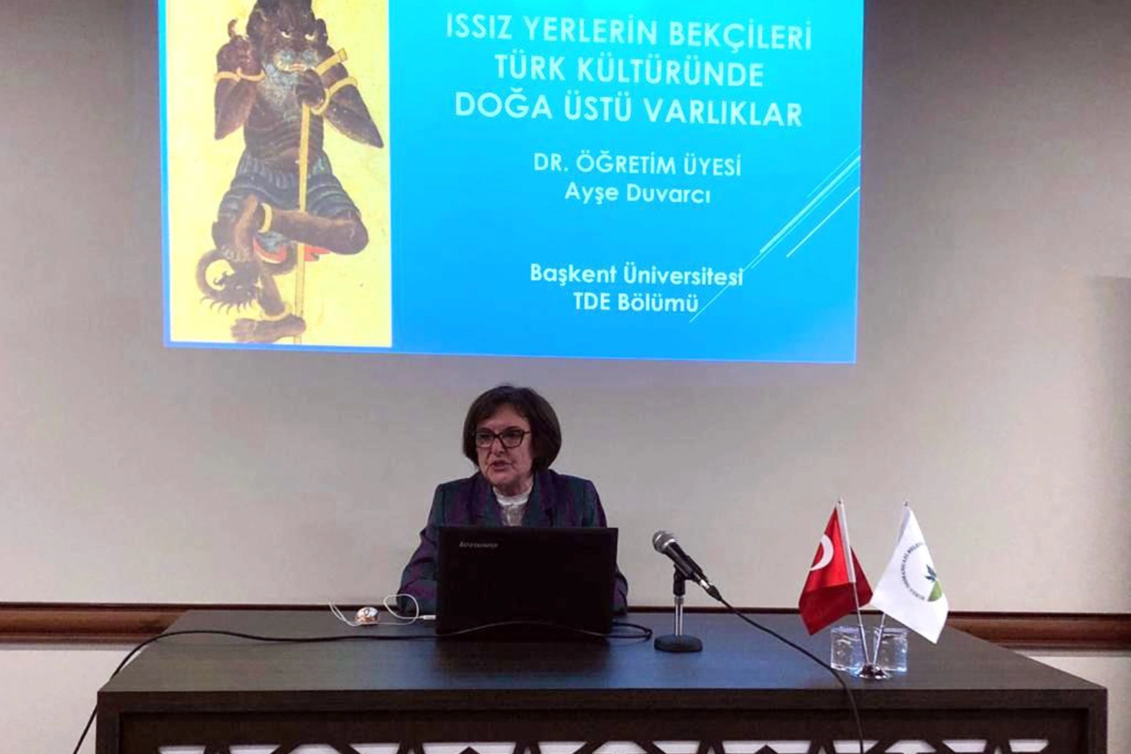 İlk söyleşiyi “Issız Yerlerin Bekçileri (Türk Kültüründe Doğa Üstü Varlıklar”)” başlıklı konuşmasıyla Başkent Üniversitesi Öğretim Üyelerinden Dr. Ayşe Duvarcı gerçekleştirdi. Halk inanışlarında yer alan Karakoncolos, Congolos, Kara-kura, Kara korşak, Kamos, Kayış Ayak, At Binen Cin, Çarşamba Karısı, Karabasan, Albastı gibi doğaüstü varlıklardan ve onların özelliklerinden bahseden Duvarcı, bu olağanüstü varlıkların halk inanışlarına göre yaşadıkları yerlere de değindi.