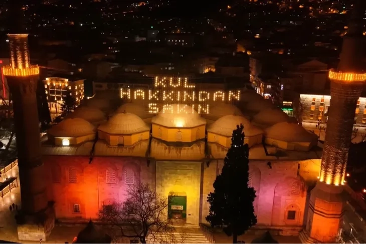 Osmanlı’dan miras 400 yıllık mahya geleneği, Bursa semalarını yeniden aydınlattı. Tarihi Ulu Cami’nin minareleri arasına bu yıl asılan "Kul hakkından sakın" yazılı mahya, hem büyüleyici bir manzara oluşturdu hem de Ramazan'ın manevi ruhunu kalplere kazıdı. İşte o ihtişamlı görüntü...