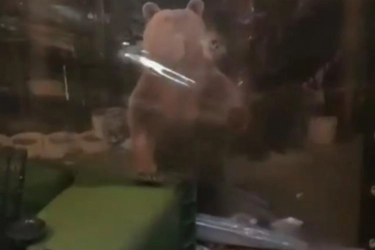 Yarım dakika boyunca işletmeye girmeye çalışan ayılar, başaramayacağını anlayınca geldikleri ormanlık alana doğru giderek gözden kayboldu.