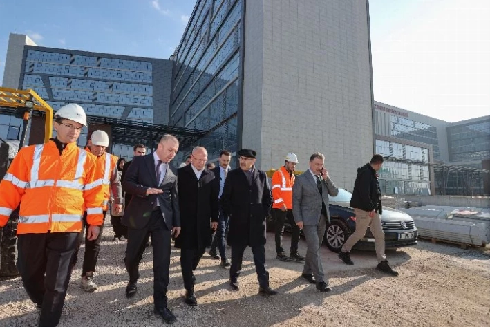 Hayırsever Sönmez Ailesi'nin destekleriyle Bursa'ya inşaa edilen bin 315 yataklı dev sağlık üssü Ali Osman Sönmez Hastanesi’nde incelemelerde bulunan Vali Mahmut Demirtaş'a, Vali Yardımcısı Vekili Murat Süzen, AK Parti Bursa İl Başkanı Davut Gürkan, İl Sağlık Müdürü Dr. Orkun Yıldırım ve beraberindeki heyet eşlik etti.