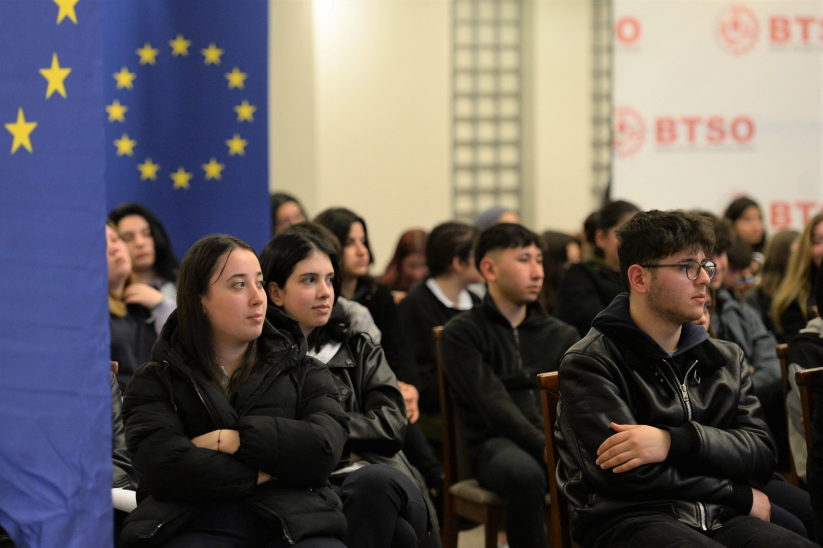 Avrupa Birliği (AB) Türkiye Delegasyonu’nun finansal desteği ile uygulanmakta olan, Türkiye’de AB Bilgi Merkezleri Ağı’nın desteklenmesi projesi kapsamında 1997 yılından bu yana Bursa Ticaret ve Sanayi Odası (BTSO) bünyesinde faaliyetlerini sürdüren AB Bilgi Merkezi’nin her yıl 9 Mayıs’ta ‘Barış, birlik ve beraberlik içinde yaşamak’ sloganıyla tüm dünyada kutlanan Avrupa Günü kapsamında gerçekleştirdiği ‘AB Eğitim ve Gençlik Programları Tanıtım Buluşması’ etkinliğine liseli öğrenciler, yoğun ilgi gösterdi. Eğitimde Önemli Fırsatlar Sunuluyor ‘Birlikte güçlüyüz’ sloganıyla gerçekleştirilen etkinliğin moderatörlüğünü yapan BTSO Genel Sekreter Yardımcısı ve Bursa AB Bilgi Merkezi Koordinatörü Hasan Erdem, açılış konuşmasında “AB’nin sunduğu ayrıcalıklı eğitim fırsatlarını üniversite hazırlığında olan gençlerimiz yakından takip etmeli. Yurt dışında eğitim olanaklarını araştırmaya başlamak, ilk adımı atmaktır. Gençlerimizin kariyer planlamasında önemli bir yer tutacak bu adım, geleceklerini şekillendirme noktasında ışık tutacaktır. AB Bilgi Merkezi olarak bizler de etkinliklerle öğrencilerimizin yanında olmaya devam edeceğiz.” ifadelerini kullandı. ‘Geleceğinizi Daha İyi Şekillendirebilirsiniz’ Bursa Uludağ Üniversitesi Mühendislik Fakültesi Makine Mühendisliği Bölüm Başkanı Prof. Dr. Fatih Karpat da AB tarafından eğitim, iş deneyimi ve sportif aktivite gibi alanlarda hazırlanmış ERASMUS ve Avrupa Dayanışma Programı (ESC) gibi birçok projenin, öğrencilerin kendilerini geliştirmeleri için büyük fırsatlar sunduğunu söyledi. Karpat, “Avrupa Birliği’ne aday ülke olmamız ve ekonomik iş birliği başta olmak üzere birçok noktada bağımızın bulunması, bu bölgeyi daha cazip kılıyor. Eğitim hayatınız boyunca hatta mezun olup iş sahibi olduğunuzda Avrupa Birliği ülkelerinden herhangi biri ile bağlantı kurma ihtimaliniz çok yüksek. Geleceğinizi şekillendirmeye başladığınız bu dönemlerde, ilk iş olarak eğitiminize odaklanmalı, yurt dışındaki gerek değişim programları, gerekse gençlik projelerini araştırarak bu fırsatları kaçırmamalısınız” şeklinde konuştu. ‘Kariyerinize Önemli Katkılar Sağlar’ Bursa Teknik Üniversitesi Mühendislik ve Doğa Bilimleri Fakültesi Kimya Mühendisliği Bölümü Öğretim Üyesi Doç. Dr. Ertuğrul Erkoç da, gençlerin yurt dışı eğitim imkanlarından yaralanması halinde kariyer yolculuğunda önemli avantajlar sağlayacağını dile getirdi. Avrupa Birliği Bilgi Merkezi’nin bu anlamda iyi değerlendirilmesi gerektiğinin de altını çizen Erkoç, “Avrupa Birliği ile ülkemiz arasındaki eğitim her ne kadar farklı olmasa da, imkanlar ve fırsatlar noktasında büyük farklılıklar ortaya çıkıyor. Özellikle lisans eğitimi alan öğrenciler için yabancı dil ve kariyer planlaması noktasında ERASMUS programları için araştırmalar yapmalısınız. Eğitim aldığınız alanda staj yapmak, yeni insanlarla tanışmak ve iş imkânlarından faydalanabilmek için yurt dışında eğitim size büyük kolaylıklar sağlayacak” ifadelerini kullandı. Soru-cevap şeklinde devam eden programda öğrenciler, Avrupa Birliği eğitim ve gençlik programları hakkında bilgi ve deneyim sahibi oldu.