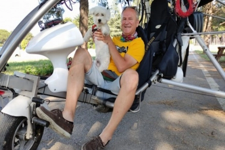 Bursa'da uzun yıllardır yamaç paraşütü, paramotor ve paratrayk pilotluğu ve hocalığı yapan İbrahim Dinçer, bir yaşına basan köpeğinin doğum gününü gökyüzünde kutladı. Paratraykla köpeğiyle birlikte havalanan İbrahim Dinçer, köpeğine Bursa'nın üstünde tur attırarak bir yaşını kutladı.