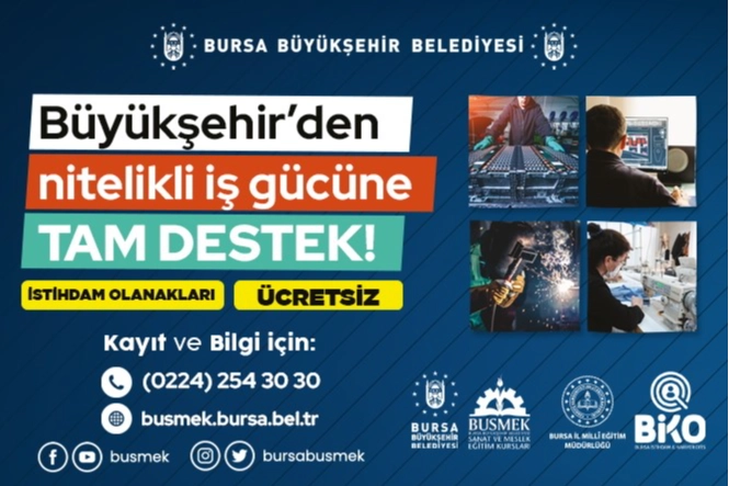 Hürriyet Mesleki ve Teknik Anadolu Lisesi ve Atatürk Mesleki ve Teknik Anadolu Lisesi ile yapılan işbirliği ile istihdama yönelik ücretsiz kurslar düzenleniyor. Bunun yanında diğer bazı Mesleki ve Teknik Anadolu Liseleri ile de yakın zamanda işbirliği ağı genişletilerek, nitelikli iş gücüne destek sürdürülecek. El Sanatları Teknolojisi, İnşaat Teknolojisi, Makine Teknolojisi, Metal Teknolojisi, Elektrik-Elektronik Teknolojisi gibi alanlarda düzenlenecek olan farklı kurslar ile sektördeki yeni gelişme ve uygulamalar kursiyerlere aktarılacak. Bu kurslar sayesinde kursiyerler, iş hayatında pratik beceriler kazanabilecek ve iş bulma şanslarını artırabilecekler. Kursiyerler, okulların atölyelerinde teorik bilgilerin yanı sıra pratik uygulama becerileri de kazanacaklar ve meslek hayatlarına en iyi şekilde hazırlanmış olacaklar. Kontenjan ile sınırlı olan kurslara başvuru yapmak isteyen kişiler, busmek.bursa.bel.tr adresindeki online başvuru kısmından ön kayıt yaptırabilecekler. Ayrıca Merinos AKKM’deki kurs merkezinden de kayıt yaptırabilecekler. Kurslar, Nisan ayının ilk haftası başlayacak.