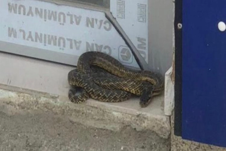 Edinilen bilgiye göre, dün İznik ilçesinde ambalaj işi ile uğraşan 36 yaşındaki İsa Demirci'yi arayan vatandaşlar, iş yerinin önünde yılan olduğunu söyledi. İşletmesine giden genç adam kapının önünde yatan yılanı görünce şok yaşadı. Aşırı sıcaklardan dolayı yuvasından çıkan yaklaşık 2 metrelik yılan, vatandaşlar tarafından kürekle alınarak bölgedeki bir tarlaya bırakıldı.