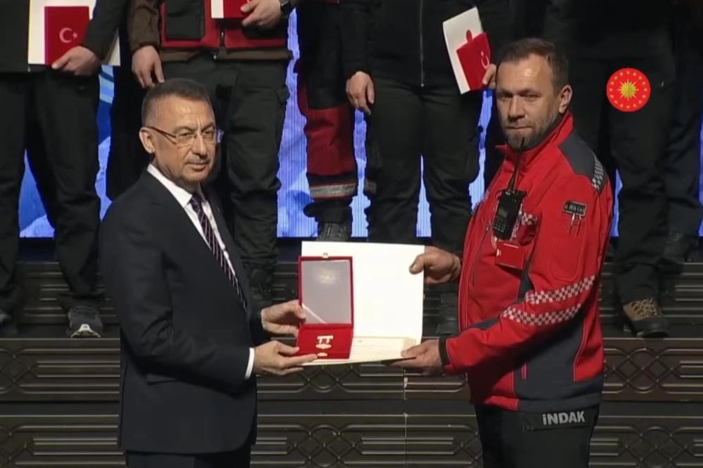 İnegöl’de 2016 yılında 23 gönüllünün bir araya gelmesiyle kurulan, geride kalan sürede İnegöl Belediyesi’nin de ciddi katkı ve destekleriyle adeta tam donanımlı bir arama kurtarma ordusuna dönüşerek bugün sayısı 200’leri aşan İnegöl Doğal Afetler Arama Kurtarma Ekibi (İNDAK), Kahramanmaraş depreminde ortaya koyduğu başarı ve fedakarlığıyla dikkat çekti. 11 gün boyunca Kahramanmaraş'ın Onikişubat ilçesinde arama kurtarma çalışmaları gerçekleştiren ve bu süreçte 12 kişiyi canlı olarak kurtaran, 98 kişinin de cenazesini çıkartarak yakınlarına teslim eden İNDAK ekibi, özellikle 222’nci saatte Melike İmamoğlu’nu enkaz altında kurtararak büyük bir başarıya imza atmıştı. İNDAK, bu başarılarının ardından Cumhurbaşkanlığı tarafından “Devlet Üstün Fedakârlık Madalyası ve Nişanı” ile ödüllendirildi. Beştepe’de tören düzenlendi Cumhurbaşkanlığı tarafından düzenlenen, 6 Şubat depremlerinde fedakârlık gösteren yerli ve yabancı arama kurtarma ekiplerine verilen “Devlet Üstün Fedakârlık Madalyası ve Nişanı Tevcih Töreni” Salı günü Beştepe Millet Kongre ve Kültür Merkezi’nde gerçekleştirildi. Düzenlenen törene Cumhurbaşkanı Recep Tayyip Erdoğan da katıldı. Törende İnegöl Doğal Afetler Arama Kurtarma adına İNDAK Başkanı Ömer Gürkan hazır bulundu. Törende deprem bölgelerinde arama kurtarma faaliyeti yapan 218’i Türk, 116’sı yabancı 334 kişi Devlet Üstün Fedakarlık Madalyası ve Nişanı tevcihine layık görüldü. Cumhurbaşkanı Erdoğan, “Yerli yabancı toplam 55 bin kişiye madalya ve nişanları takdim edeceğiz. Bugün takdim ettiğimiz madalya ve nişanlar manevi birer hatıradır. Ülkemiz ve milletimiz adına edilmiş samimi bir teşekkürün ifadesidir” dedi. Depremin ilk anından itibaren birkaç saat içerisinde hazırlıklarını yapıp bölgeye ulaşan ve 11 gün boyunca deprem bölgesinde etkin bir rol oynayan İnegöl Doğal Afetler Arama Kurtarma Ekibi adına Devlet Üstün Fedakârlık Madalyası ve Nişanını İNDAK Başkanı Ömer Gürkan, Cumhurbaşkanı Yardımcısı Fuat Oktay’ın elinden aldı.