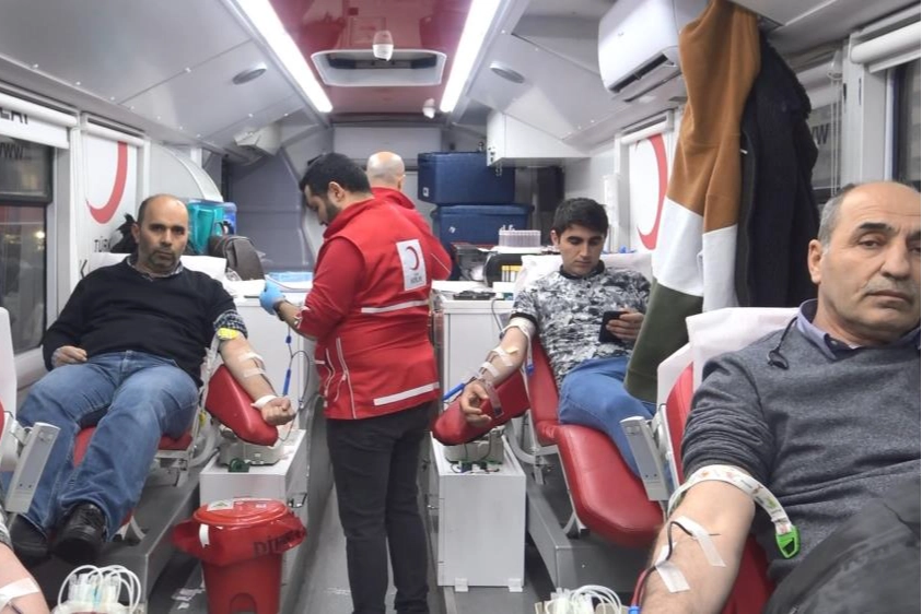 Bu sabah merkez üssü Kahramanmaraş’ın Pazarcık ilçesi olan 7.4 büyüklüğündeki depremin ardından Kızılay’ın yaptığı yardım çağrısına vatandaşlar, olumsuz hava şartlarına rağmen yoğun ilgi gösterdi. Deprem haberlerini gören vatandaşlar, Kızılay’ın yardım çağrısına kayıtsız kalamadı. Sabah saatlerinden itibaren kan bağışında bulunmak isteyenler, karlı hava şartlarına rağmen 15 Temmuz Demokrasi Meydanı'ında bulunan Kızılay Mobil Kan Toplama Merkezi önünde uzun kuyruklar oluşturdu. 6 ayda bir kan bağışında bulunduğunu belirten Yurdaer Demir, “Şu an Güneydoğu bölgemizde meydana gelen depremden dolayı kan bağışında bulunuyorum. İnsanların yoğunluğu çok güzel bir şey. Sadece böyle durumlarda değil her zaman kan vermeyi tavsiye ediyorum. Kendim 6 ayda bir kan veren birisiyim. İnsanların bu duyarlılığına teşekkür ediyorum. Allah oradaki insanlarımızın yardımcısı olsun. Ölenlere baş sağlığı diliyorum” şeklinde konuştu. Kan bağışında bulunmak için sıra bekleyen Eren Köseoğlu, “Kazazedelere yardımda bulunmak için kan bağışında bulunmaya geldim. Bugünkü yoğunluk çok güzel. Vatandaşlarımızın birbirine yardımcı olması, depremzedelere yardım etmesi, kan bağışında bulunması çok güzel. Ama keşke bu yoğunluk her zaman olsa, çünkü kan depoları boşalmıştı. Ama yine de böyle durumlarda yardımcı olmamız güzel bir şey. Daha farkındalık gerektiren bir şey aslında bu” dedi. Herkesin elinden geldiğince yardımda bulunması gerektiğini ifade eden İsmail Bektaş, “Bugün için elimizden gelen tek bir şey var. Vatandaşlarımızdan rica ediyorum. Herkes elinden geleni yapsın çünkü bu doğal bir afet. Biraz daha bu acıyı paylaşalım azaltalım istiyorum. 2 saat değil 5 saat de olsa bekleyip kanımı verim gideceğim” diye konuştu.