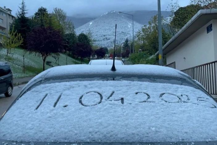 Sabah saatlerinde işe gitmek için dışarı çıkan vatandaşlar, nisan ayında kar sürprizi ile karşılaşınca o anları cep telefonları ile kayda aldı.