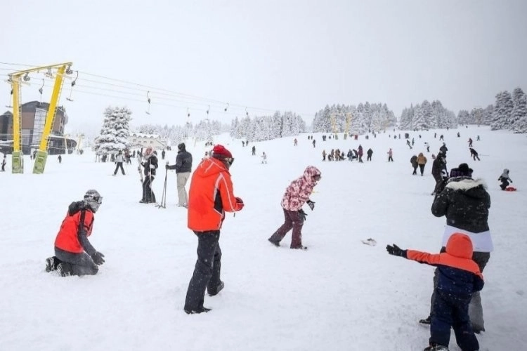Ağırlıklı olarak günübirlikçilerin doldurduğu pistlerde bazı ziyaretçiler öğretmenler eşliğinde kayak öğrenirken, özellikle çocuklar poşetlerle kaydı.