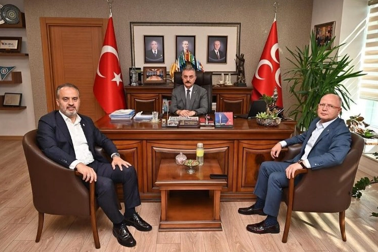 Bursa Büyükşehir Belediye Başkanı Alinur Aktaş ve AK Parti Bursa İl Başkanı Davut Gürkan, önceki gün önemli bir ziyaret için MHP genel merkezindeydi. Önce 6 dönemdir Bursa’yı parlamentoda temsil eden ve genel sekreterlik gibi önemli bir görevi yerine getiren Bursa Milletvekili İsmet Büyükataman ile görüşen Aktaş ve Gürkan daha sonra MHP lideri Bahçeli ile makamında görüştü.
