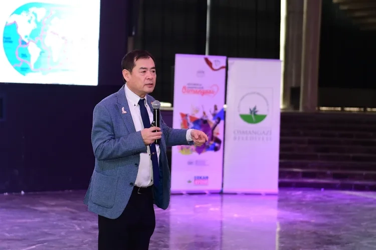 Söyleşinin ardından CHP Osmangazi İlçe Başkanı Raşit Gürbüz ve Osmangazi Belediyesi Meclis Üyesi Bakır Taşer, Yoshinori Moriwaki’ye teşekkür plaketi takdim etti.
