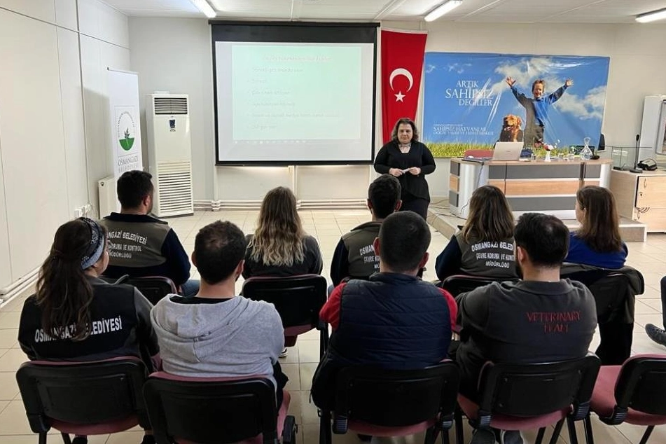 Bursa'nın Osmangazi Belediyesi Sahipsiz Hayvanlar Doğal Yaşam ve Tedavi Merkezi’nde gerçekleşen eğitim programında Bursa Uludağ Üniversitesi Veteriner Fakültesi İç Hastalıkları AD Öğretim Üyesi Prof. Dr. Ebru Yalçın, müdürlük personelini kedi ve köpekler için başlıca stres kaynaklarının tanımlanması, stresin yol açabileceği hastalıklar ile stresin azaltılması için uygulanabilecek tedavi yöntemleri konularında bilgilendirdi. Bunun yanı sıra hayvan refahı açısından tüm geçici bakım evi çalışanlarının dikkat etmesi gereken hususlara değinen Yalçın, uygun yakalama ve taşıma tekniklerini de gösterdi.