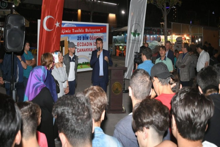 Çanakkale'ye hareket öncesinde Mihraplı Parkı'nda öğrencilerle bir araya gelen Osmangazi Belediye Başkanı Mustafa Dündar, "Geleceğimiz Tarihle Buluşuyor" projesi ile öğrencilerin Çanakkale ruhunu yerinde yaşama fırsatı bulduklarını söyledi. Bu yıl 20 bin öğrenciyi Çanakkale'ye götürdüklerini belirten Dündar, "Çocuklarımızın, istiklal destanının yazıldığı toprakları görebilmeleri adına bu kültür turlarımızı düzenliyoruz. Atalarımız hangi şartlarda, neler yaşamışlar bunları gördüğümüz zaman bugünün kıymetini, bayrağımızın kıymetini daha iyi anlarız. Çocukluğumuzdan beri ülkemizin hep stratejik konumda olduğu anlatılırdı. O zamanlar belki çok anlamazdık. Şimdi olayları daha iyi görüyoruz. Bizde petrol ve doğalgaz yok ama tüm dünyanın gözü burada. Türkiye, çok önemli bir merkez. O yüzden çok güçlü olmamız gerekiyor. Kendi içimizde kardeş olmamız gerekiyor. Birlikte olduğumuz sürece kimse bize be bayrağımıza yan bakamaz. Eğer müslümanlar birlikte olsaydı, bugün Filistin'de yaşananlar olmazdı. Gücümüzün farkına varmamız lazım. Bugün İslam aleminde gönlü buraya dönük coğrafyaların lideri Türkiye'dir. Ülkemizin gelecekle ilgili beklentileri çok fazla. Sizlerin güçlü olmasıyla ülkemizin geleceği daha iyi noktalara gelecek" dedi.