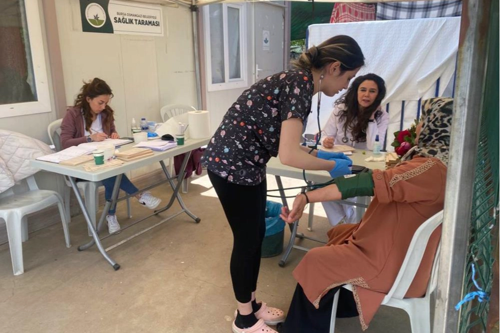 Deprem felaketinin yaralarını sarmak için seferber olan kurumlardan biri olan Osmangazi Belediyesi, deprem bölgesine prefabrik konut inşaatı, aşevi ve ilaçlama temizlik hizmetlerinin yanı sıra sağlık taramasına da başladı.