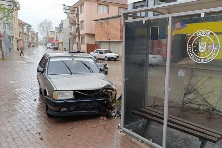 Bursa'nın İnegöl ilçesinde polisin "dur" ihtarına uymayıp kaçan ehliyetsiz sürücü durağa çarptı.