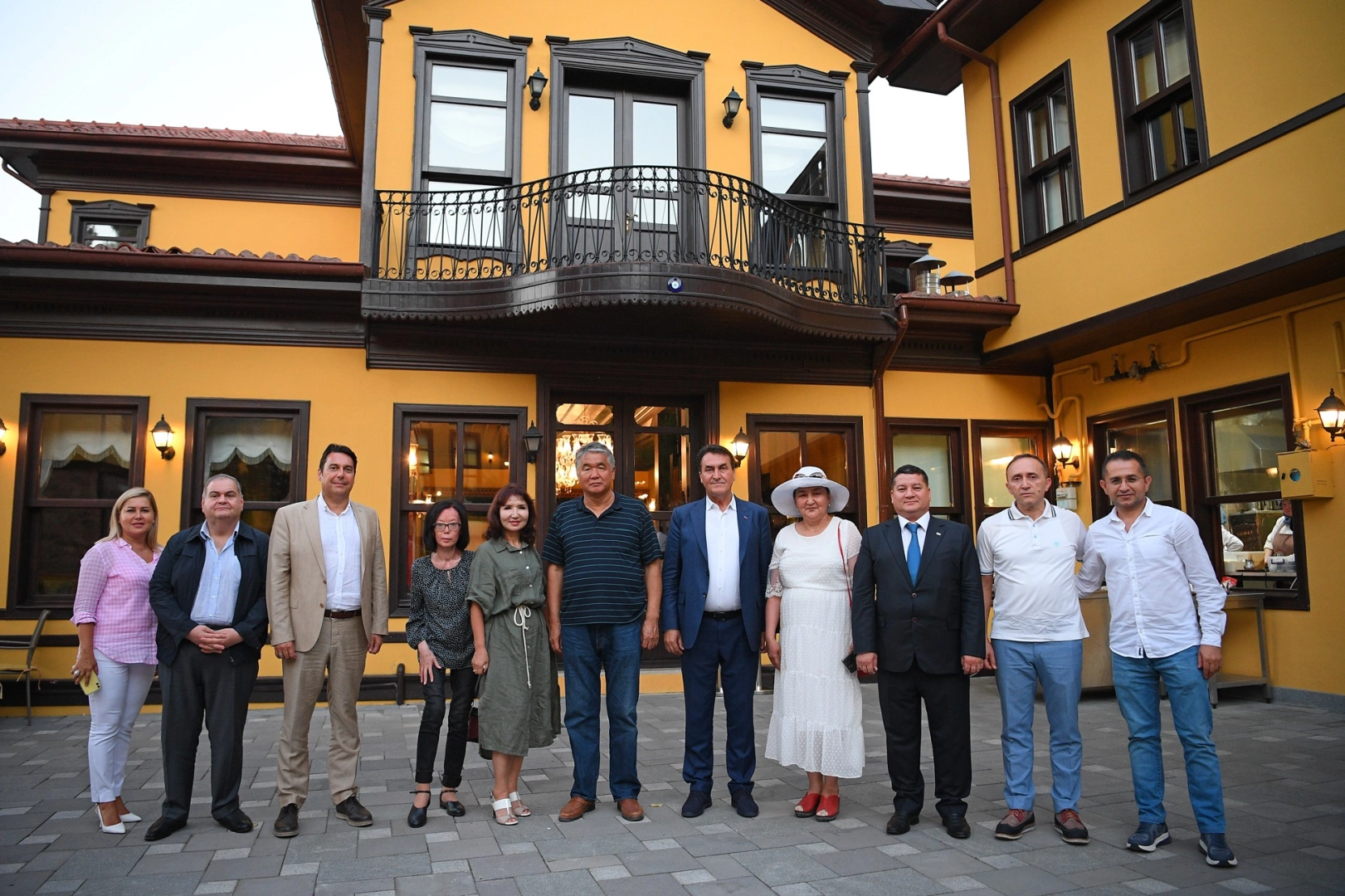 Panorama 1326 Bursa Fetih Müzesi’nde üç gün sürecek toplantı öncesinde Sümbüllü Bahçe Konağı’nda misafirlerle buluşan Osmangazi Belediye Başkanı Mustafa Dündar, “Bizler, yeniden çok önemli bir etkinliğe imza atıyoruz. TÜRKSOY Sinema Forumu Hazırlık Toplantısı ile Türkiye, Azerbaycan, Kazakistan, Kırgızistan ve Türkmenistan’dan gelen temsilcilerle yol haritamızı belirliyoruz. Aynı zamanda toplantı sonlarında her ülkenin kendi filmlerinden örnekler izletmeyi planlıyoruz. Bu çalışmayla Osmangazi Belediyemiz ve TÜRKSOY, Kültür ve Turizm Bakanlığı ile birlikte güzel bir çalışmaya imza atacak. Hayırlara vesile olmasını diliyorum” dedi.