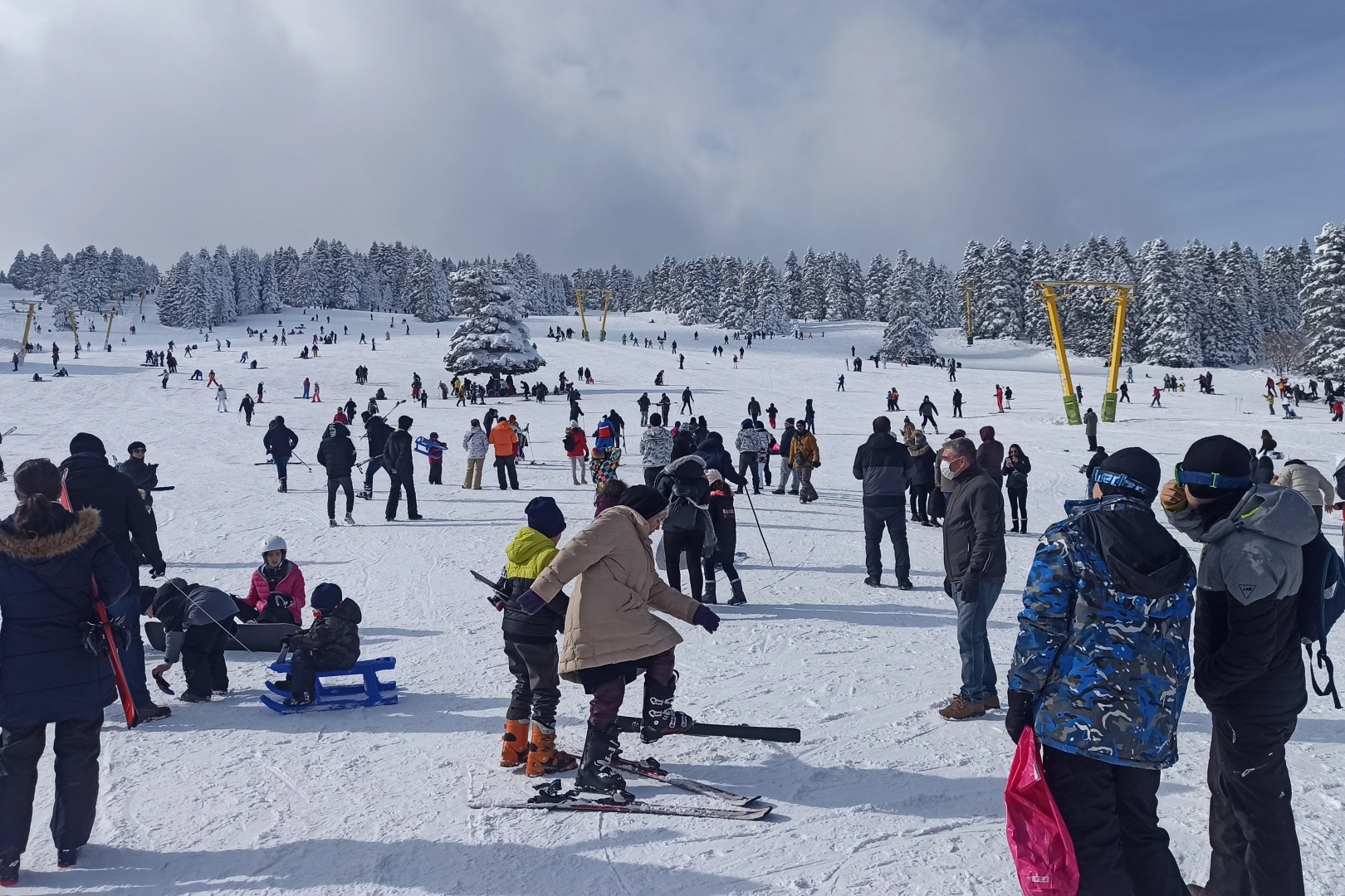 Hava sıcaklığının eksi dereceleri bulduğu Uludağ'da güneşli havayla birlikte yerli ve yabancı tatilcilerin haricinde günübirlikçiler de pistlere akın etti.