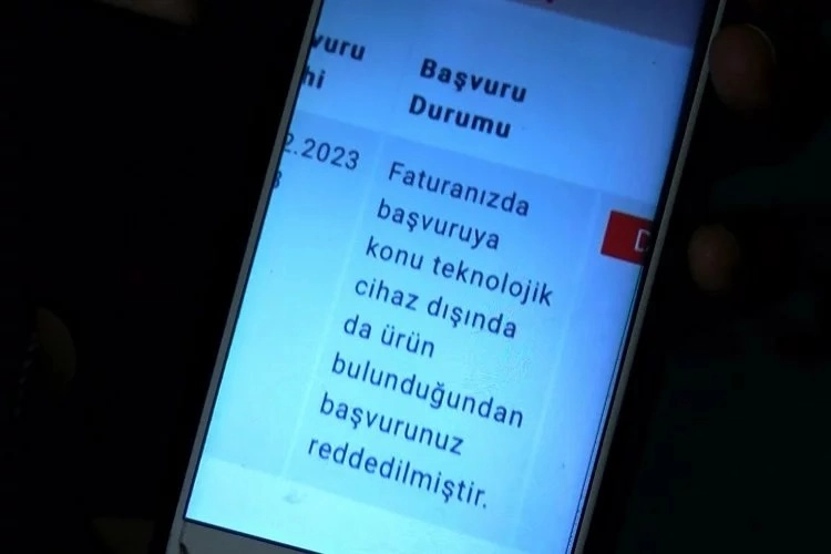 Dedesinin teklifi üzerine Batman’daki bir teknoloji mağazasından 9 bin 500 TL’ye cep telefonu alan Zeynep Ö., internet üzerinden vergi iadesi başvurusunda bulundu. Ancak, başvurusuna faturasında 21 kuruşluk poşet ücreti de yansıtıldığı için olumsuz yanıt geldi. ‘Faturanızda başvuruya konu teknolojik cihaz dışında da ürün bulunduğundan başvurunuz reddedilmiştir’ mesajı üzerine şok olan Zeynep Ö., hemen dedesini aradı. Torununun, 21 kuruşluk poşet ücreti nedeniyle 4 bin 500 liralık vergi iadesini alamayacağını öğrenince, 9 bin 500 TL’nin tamamını ödemek zorunda kalan Mehmet Ergun Ö., Tüketicileri Koruma Derneği’ne başvurdu.