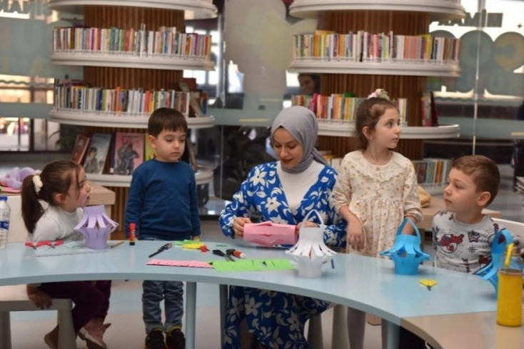 Mimar Sinan Çocuk Kütüphanesi'nde gerçekleştirilen programlarda Çocuk Kitabı Yazarı Feyza Kartopu, her hafta farklı eser ve konularla çocukların hayal gücünü geliştiriyor. 'Masal Saati'nde bu hafta Ramazan temasıyla önce 'Çıtır Çıtır Bir Bayram Macerası Kitabı' anlatıldı. Sonrasında çocuklarla Ramazan kandili yapıldı.