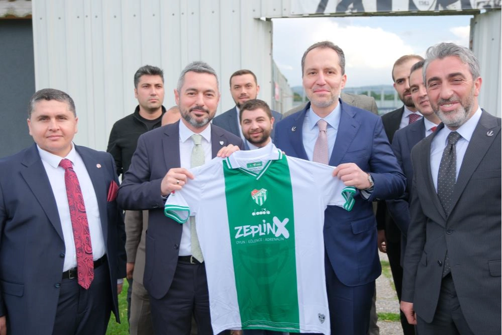 Bursaspor Kulübü’ne önemli bir ziyaret gerçekleşti. Yeniden Refah Partisi Genel Başkanı Dr.Fatih Erbakan, yeşil-beyazlıları ziyaret ederek, “Bursaspor'un yeri her zaman Süper Lig’tir” açıklamasında bulundu. Yeniden Refah Partisi Genel Başkanı Dr.Fatih Erbakan ve beraberindeki heyet Bursaspor Kulübü’nü ziyaretetti. Özlüce İbrahim Yazıcı Tesisleri’nde gerçekleşen ziyarete, yeşil-beyazlı kulüp adına Başkan Ömer Furkan Banaz, Yönetim Kurulu Üyeleri; Mehmet Zahit Yanar, Rıdvan Gültekin ve Emre Planalı katıldı. Yeniden Refah Partisi Genel Başkanı Dr. Fatih Erbakan, ‘Yadigar Hatıra Bilet’ kampanyasına 1963 adet ile destek olurken, "Bursaspor'un yeri her zaman Süper Lig’tir. Camiasıyla, taraftarıyla inşallah yakın zamanda ait olduğu yere dönecektir" ifadelerini kullandı. Ziyaretin sonunda Başkan Ömer Furkan Banaz, Erbakan'a Bursaspor forması hediye etti.