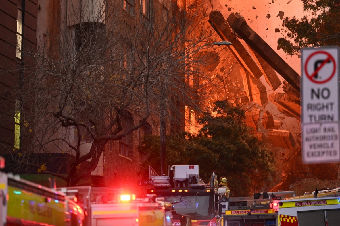 Avustralya’nın Sydney kentinde alevlerin sardığı bir binanın üst katındaki duvar aniden yıkıldı. Yangına 100 itfaiye erinin müdahale ettiği belirtildi.