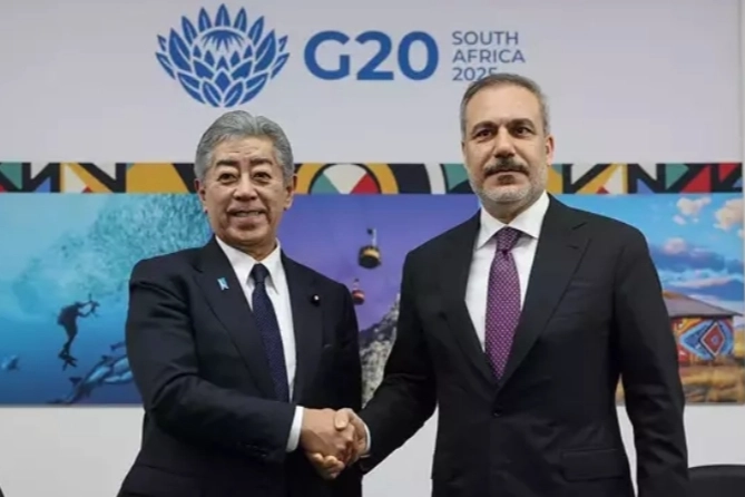 Dışişleri Bakanı Hakan Fidan, Güney Afrika'nın Johannesburg kentinde düzenlenen G-20 Dışişleri Bakanları Toplantısı marjında ikili görüşmelerine devam ediyor. Fidan, Japonya Dışişleri Bakanı Takeshi Iwaya ile bir araya geldi. İkili siyasi ve ekonomik ilişkiler ile Gazze'deki durumun ele alındığı görüşmede, savunma sanayii ve ileri teknoloji gibi alanlarda iş birliği imkanları değerlendirildi. Bakan Fidan, Gazze'de ateşkesin kalıcı olması için uluslararası toplumun ortak bir çaba göstermesi gerektiğini, İsrail-Filistin sorununun ancak iki devletli çözümle sona erebileceğini belirtti. Görüşmede, Asya-Pasifik bölgesindeki güvenlik durumu da ele alındı.