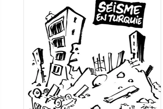 Daha önce Müslümanların inançlarına hakaret eden karikatürler yayınlayan Fransız Charlie Hebdo dergisi, binlerce insanın hayatını kaybettiği Türkiye'nin 10 ilini yıkan depremlerle alay etti. Derginin yayınladığı karikatürde yıkık binalar çizildi ve üzerine "Tank yollamaya bile gerek yok" yazdı.