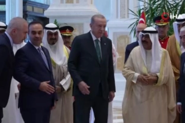 Cumhurbaşkanı Recep Tayyip Erdoğan, resmi ziyaret kapsamında bulunduğu Kuveyt'teki temaslarını sürdürüyor. Cumhurbaşkanı Erdoğan, Kuveyt Uluslararası Havalimanı'na inişinde Kuveyt Emiri Meşal el-Ahmed el-Cabir es-Sabah tarafından resmi törenle karşılanmasının ardından programı dahilindeki görüşmelerin gerçekleştirileceği alana geldi. Cumhurbaşkanı Erdoğan, temasları kapsamında Kuveyt Emiri es Sabah'a beyaz renkte Togg aracı hediye etti. Kuveyt ziyaretinde Cumhurbaşkanı Erdoğan'a; eşi Emine Erdoğan, Dışişleri Bakanı Hakan Fidan, Enerji ve Tabii Kaynaklar Bakanı Alparslan Bayraktar, Hazine ve Maliye Bakanı Mehmet Şimşek, Millî Savunma Bakanı Yaşar Güler, Sanayi ve Teknoloji Bakanı Mehmet Fatih Kacır, Ticaret Bakanı Ömer Bolat eşlik ediyor. Cumhurbaşkanı Erdoğan, Kuveyt'ten sonra Katar'a geçecek