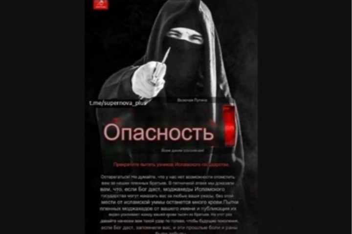 İddia edilen uyarıyı taşıyan bir posterde şöyle yazıyor: "Putin dahil: Tüm vahşi Ruslar için tehlike! İslam Devleti mahkumlarına işkence etmeyi bırakın. Dikkat edin! Esir kardeşlerimiz için sizden intikam alma fırsatımız olmadığını düşünmeyin." Açıklamada ayrıca şu ifadelerin kullandıldığı öne sürüldü: "Cuma günkü saldırıda size şunu kanıtladık: Allah'ın izniyle İslam Devleti mücahitleri, yaptığınız her türlü vahşetin cezasını size kesebilir; bu intikam alınmazsa İslam ümmetinden geriye çok kan kalacaktır. Yakalanan mücahitlere sizin adınıza işkence yapılması ve videolarının yayınlanması, binlerce kardeşinize duyduğunuz kana susamışlığı arttırmaktadır."
