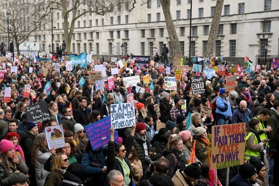 Fransa'da dün tartışmalı emeklilik reformuna karşı 1 milyondan fazla kişinin katıl grev ve gösterilerin ardından bugün ngiltere'de, aralarından öğretmen, makinist ve farklı alanlarda çalışan kamu personelinin bulunduğu on binlerce kişi sokağa çıktı. "Adil maaş" talep eden göstericiler, ülke çapında son 10 yılın en büyük grevini yaptı.