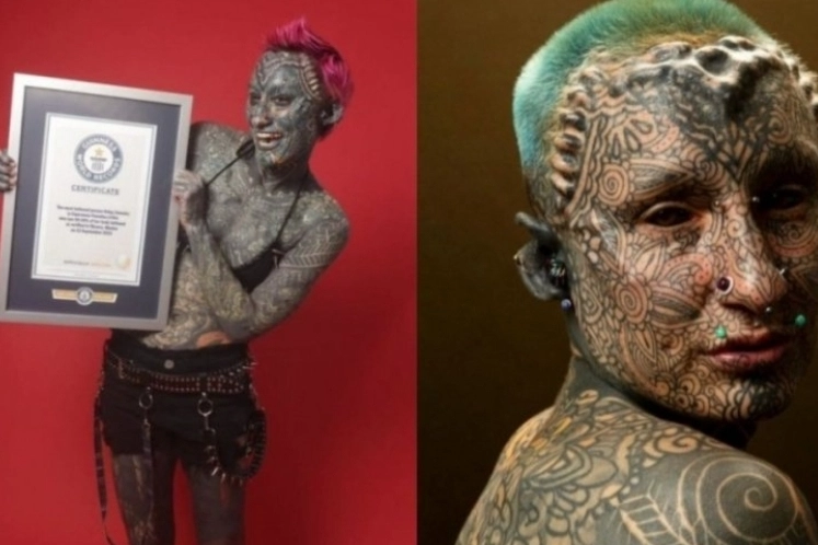 36 yaşındaki Esperance Lumineska Fuerzina 10 yılda vücudunun %99,98'ini dövmeyle doldurduktan sonra dünyanın en çok dövmesine sahip kadını oldu.