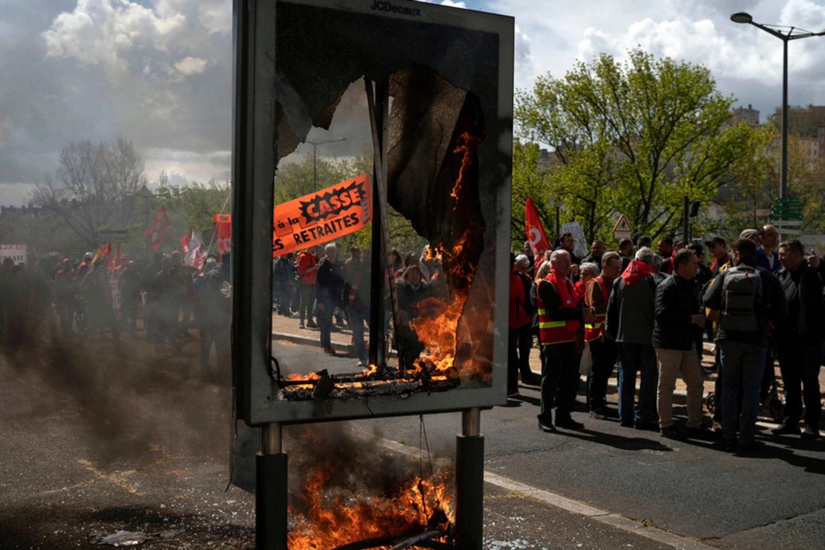 Fransa'da Anayasa Konseyinin emeklilik reformunu kısmen onaylamasının ardından protestolarda tansiyon yükseliyor. Karara tepki gösteren protestocularla polis arasında arbede yaşanırken, sokaklarda çöp konteynerları ateşe verildi. Kararın ardından ülkenin önde gelen sendikaları tarafından yapılan ortak açıklamada, Anayasa Konseyinin kararına tepki gösterilirken, iktidarın hiçbir toplantı talebini kabul etmeyecekleri belirtildi. Sendikalar, tüm çalışanları 1 Mayıs'ta eylem yapmaya çağırdı. Ülke genelinde protestolara yol açan reforma göre, Fransa'da 1 Eylül'den itibaren emeklilik yaşı her yıl 3 ay kademeli olarak artırılacak. Emeklilik yaşı 2027'de 63 yıl 3 aya, 2030'da ise 64 yıla ulaşacak. 2027'den itibaren emeklilik maaşının tamamını alabilmek için 43 yıl çalışmış olmak gerekecek.